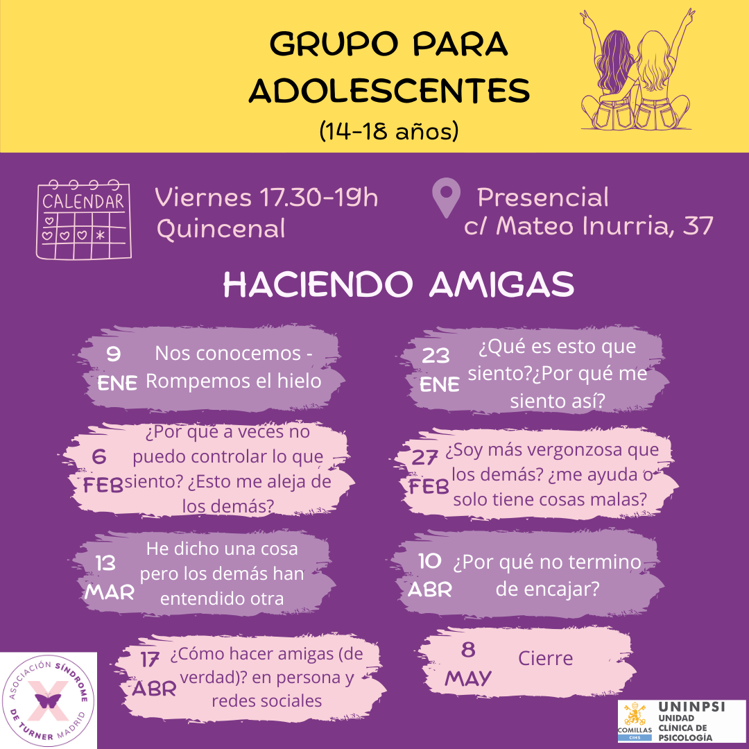 Con frecuencia, las chicas con síndrome de Turner tienen trastorno de aprendizaje no verbal que les dificulta entre otras cosas, identificar y entender el lenguaje no verbal, las señales que los demás nos envían sobre los que les gusta o no, lo que esperan o no de nosotros. Su impacto sobre las relaciones sociales puede ser significativo, especialmente en la infancia y sobre todo, la adolescencia. Por eso, desde la ASTM identificamos como prioridad, ayudar a nuestras chicas a identificar las herramientas para navegar la vida social. Las evaluaciones que llevamos haciendo junto a la Uninpsi desde 2024; el primer taller de habilidades que se realizó para niñas pequeñas este año; y los grupos de adultas. Todo ha ayudado al equipo de la Uninpsi para diseñar nuevos talleres específicos para las características del síndrome de Turner, para seguir avanzando con las pequeñas, y empezar con las adolescentes.